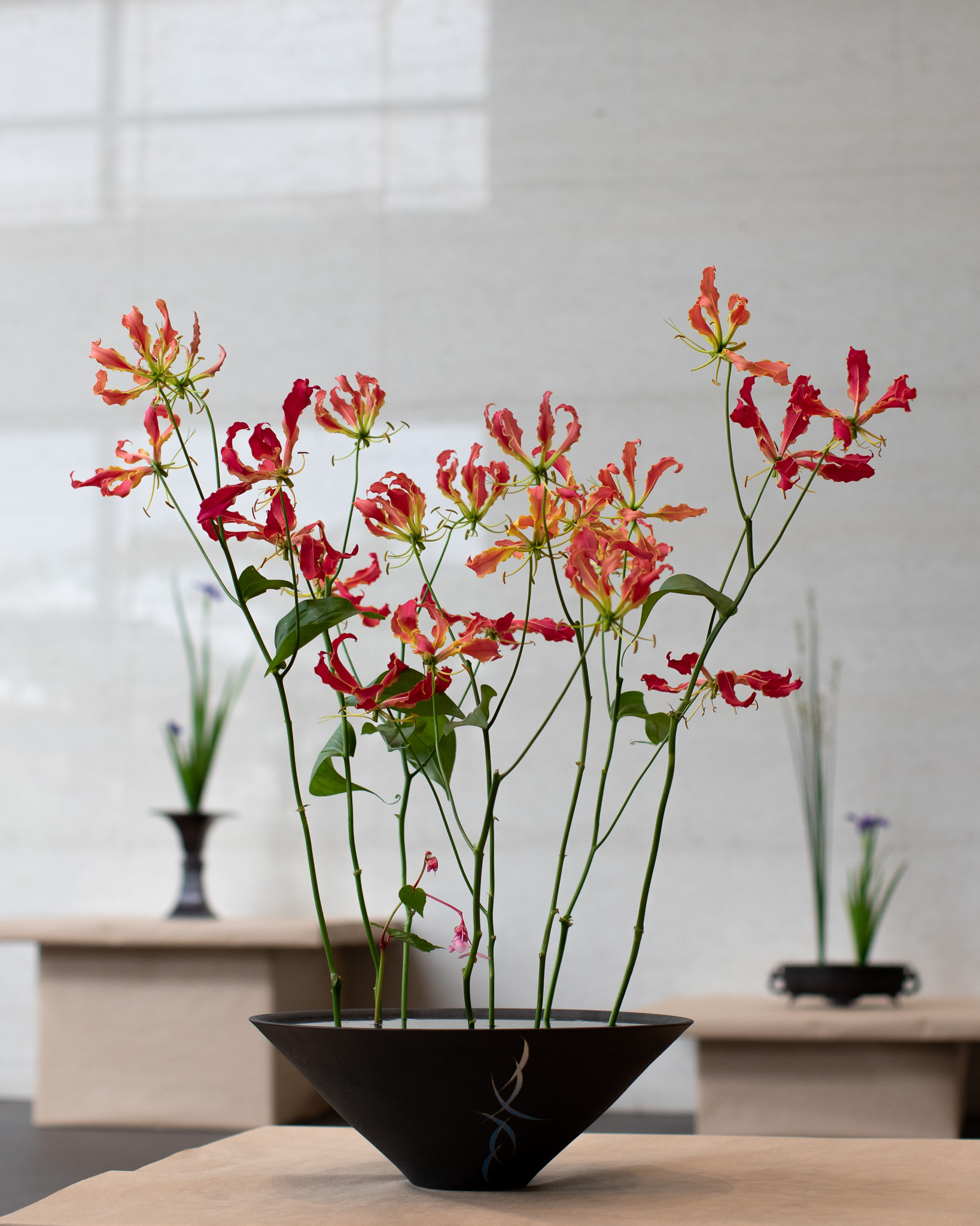 会場には、夏らしさを感じる元気いっぱいのいけばなを展示します。江戸時代から伝わる伝統的なものから現代的いけばなまで、見応えあるいけばなの数々をぜひご覧ください。