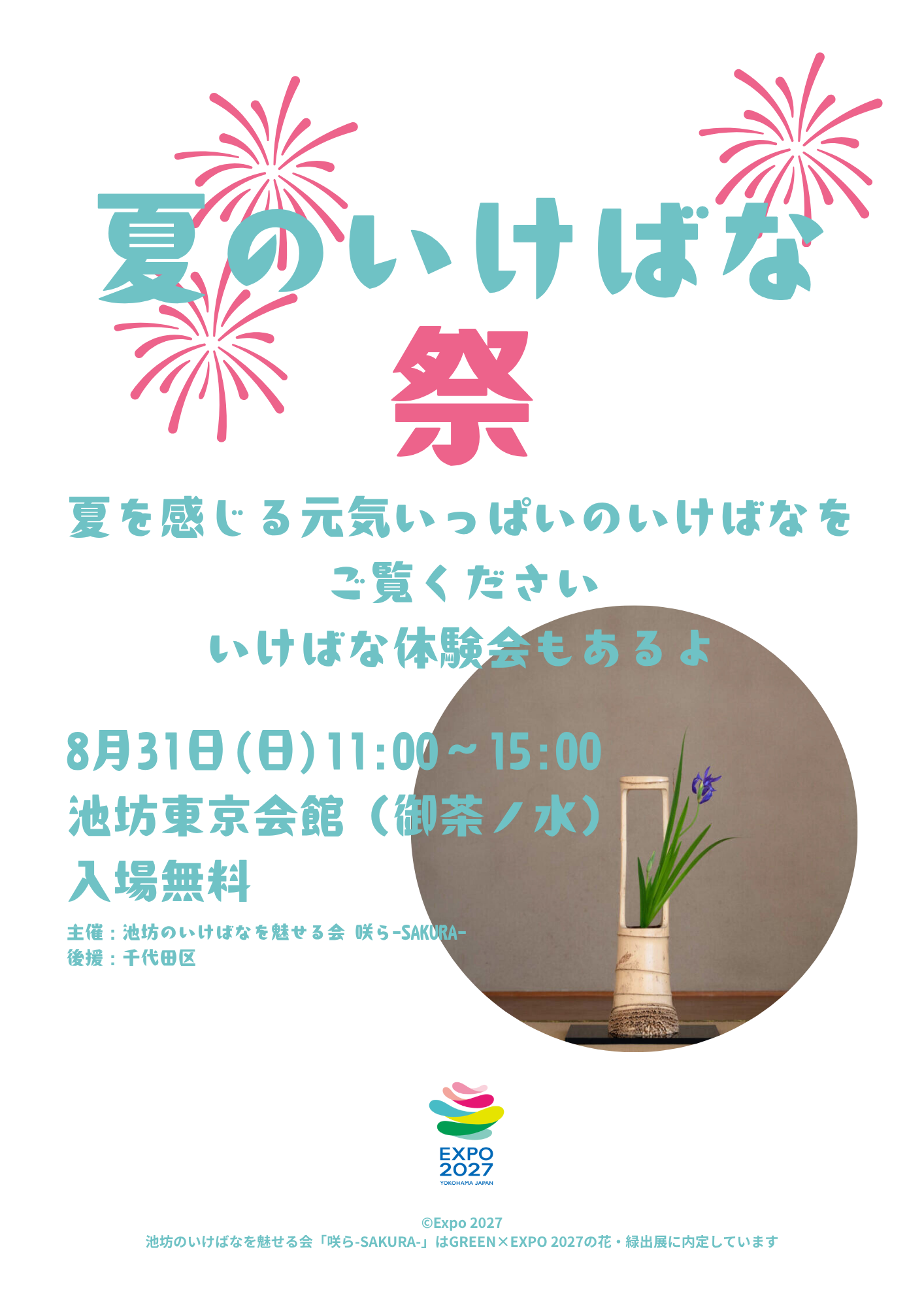 本イベントを主催する池坊のいけばなを魅せる会 咲ら-SAKURA-は GREEN×EXPO 2027の花・緑出展に内定しています。